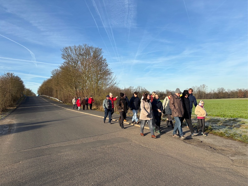WinterwanderungBei leichten Minustemperaturen führte die traditionelle Winterwanderung der Jügesheimer Kolpinger „zwischen den Jahren“ nach Weiskirchen.Der Weg ging zunächst über das östliche Jügesheimer Feld an den Tennisplätzen und dem Schützenhaus vorbei zum Schönstattzentrum. Im Zentrum wurde die Gruppe bestens mit heißen Getränken versorgt. Die letzte Reststrecke zur SKG-Gaststätte „Tresor“ war schnell bewältigt. Bei leckeren Speisen und Getränken verging die Zeit in Flug. Der Heimweg führte dann ganz unspektakulär über Weiskirchen zurück.