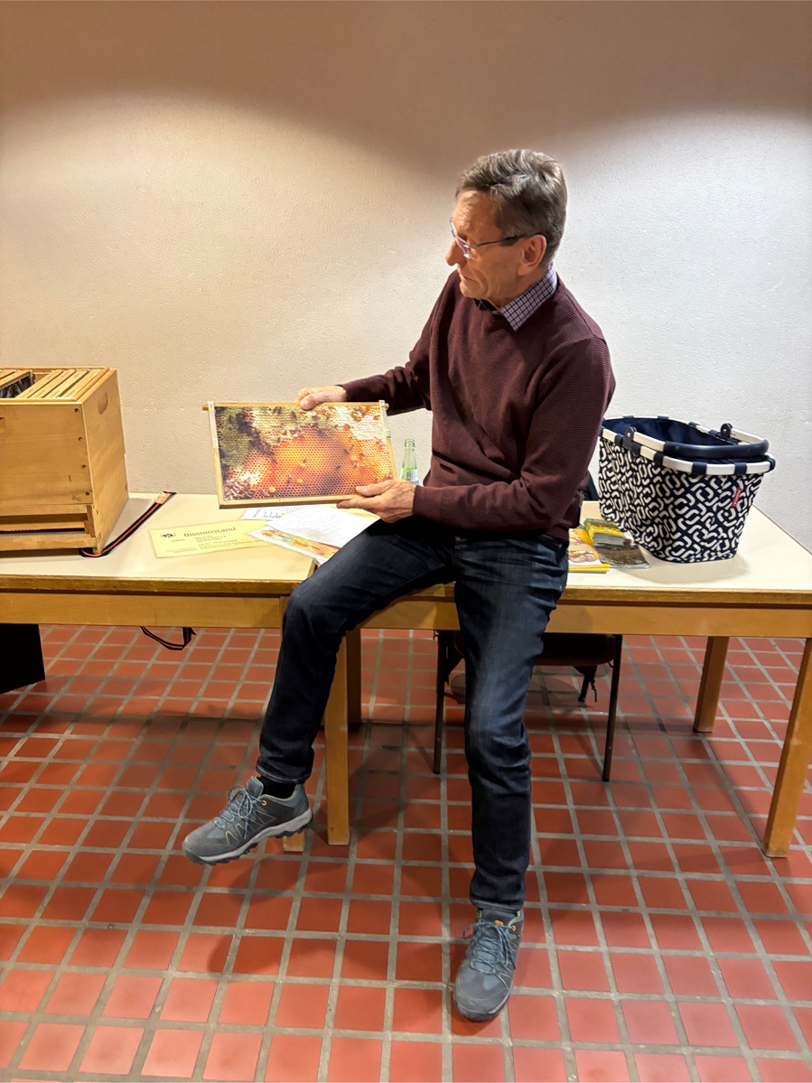 Imkerei im Zeichen des Klimawandels, so lautete der Titel des Vortrags des Hainhäuser Hobbyimkers Otto Koller am 16. März im Haus der Begegnung. Zunächst berichtete Herr Koller vor ca. 25 interessierten Gästen, dass es ca. 137.000 Imker in Deutschland gibt, welche die Fläche der Bundesrepublik abdecken. Davon sind 99,5% Hobbyimker. Es gibt einen guten Zulauf, gerade von jungen Menschen und speziell auch vielen Frauen, die in dieses spannende und wichtige Thema einsteigen. Dann kam er auf den aktuell in einem Bienenstand in Langen festgestellten Ausbruch der „Amerikanischen Faulbrut“ zu sprechen. Herr Koller erläuterte die Ursache der Krankheit, die typischen Anzeichen und deren Bekämpfung. Weiterhin sprach er über die Bekämpfung von Milben im Bienenstock mit Ameisensäure. Die Kommunikation mit den hiesigen Landwirten bezüglich anstehender Spritzungen mit Pflanzenschutzmitteln beschrieb Herr Koller als gut, dies wurde von einem Hobbyimker im Publikum bestätigt. So können im Vorfeld Schutzmaßnahmen für die Bienenvölker getroffen werden.Im weiteren Verlauf beschrieb Herr Koller den Jahreszyklus eines Bienenvolkes, vom Reinigungsflug nach dem Winter, bis zur Winterversorgung mit Zuckerwasser, die Rollen der Königin, der Jungbienen und der Drohnen. Anhand anschaulicher Bilder verdeutlichte er diese Vorgänge. Zum Ende erhielten die Gäste noch einen Einblick zu den Unterschieden in den Vereinigten Staaten, wo primär Berufsimker auf einer festen jährlichen Route ihre Völker vom Winterquartier in Florida mit Trucks durchs Land fahren, um im Februar zur Mandelblüte in Kalifornien, im März zur Apfelblüte im Bundesstaat Washington, im Mai für Raps und Sonnenblumen in South Dakota, im Juni für Blaubeeren in Maine und im Juli für die Kürbisse in Pennsylvania für die Bestäubung zu sorgen und im August nach Florida zurückzukehren. Dabei werden rund 12.500 km zurückgelegt. Dort ist es reines Business. Die vielen Fragen der Gäste wurden zum Schluss gerne und ausführlich beantwortet. Der stellvertretende Vorsitzende Norbert Löw bedankte sich bei Herr Koller für den spannenden und informativen Einblick und überreichte eine Flasche Wein.