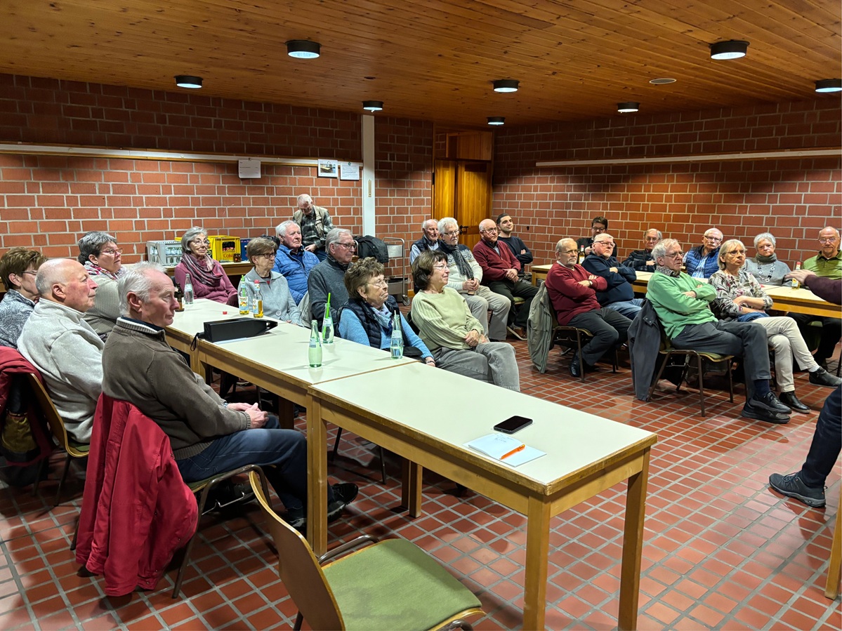 Nach der Begrüßung durch den 1. Vorsitzenden Herbert Massoth und einem besinnlichen Wort von Präses Pater John Peter zur Fastenzeit. Weiterhin gab er einen kurzen Bericht zum Pastoralenraum. Auch gab er noch einen Status zur Namensfindung. Im Anschluss wurde ein „Vater unser“ für die verstorbenen Mitglieder der Kolpingsfamilie zum Gedenken „Gegrüßet seist du, Maria“ gebetet Der Vorsitzende Herbert Massoth berichtete über Zahlen, Statistiken und Veranstaltungen aus dem vergangenen Jahr. Der Mitgliederstand zum 31.12.2024 beträgt 186 Mitglieder. Zum 23.2.2026 hatte die Kolpingsfamilie Jügesheim 183 und konnte am Stiftungsfest 2025 drei junge neue Mitglieder gewinnen. Die Rechnerin Kerstin Held berichtete zur finanziellen Lage. Sie erzählte den Zuhörern u. a., dass die Kolpingsfamilie Jügesheim von der Stadt Rodgau 2024 eine Basisförderung von 588,00 € erhalten hat. Hierfür bedankt sich die Kolpimngsfamilie. Anschließend trugen die Revisoren Günther Beetz und Matthias Müller Ihren Bericht zur Rechnungs- bzw. Kassenprüfung vor. Sie bestätigten eine hervorragende, ordnungsgemäße Kassenführung und schlugen die Entlastung der Rechnerin vor. Dieser Antrag wurde einstimmig angenommen. Herbert Massoth dankte Karlheinz Demuth für die Planung und Durchführung der Wanderungen, Michael Jung für die Organisation der Motorradveranstaltungen, Annette Massoth und Regina Beetz für die Planung der Hüttenfahrt der Frauen, Jens Werner und Norbert Löw für die Pressearbeit, Gerald David für die Pflege der Website, Alois Sahm für Vorbereitung und Durchführungen diverser Veranstaltungen (Rückblick, Adventsfeier…) und Annette Massoth für die Gestaltung des Schaukastens an der Kirche sowie dem Wirtschaftsausschuss. Herbert informierte außerdem über die Veranstaltung vor dem Stiftungsfest (Zauberer), die 175-Jahr Feier des Kolpingwerks in Köln und die Fahrradtour durch den pastoralen Raum. Die Getränke waren traditionell frei, die Veranstaltung endete gegen 20:30 Uhr.