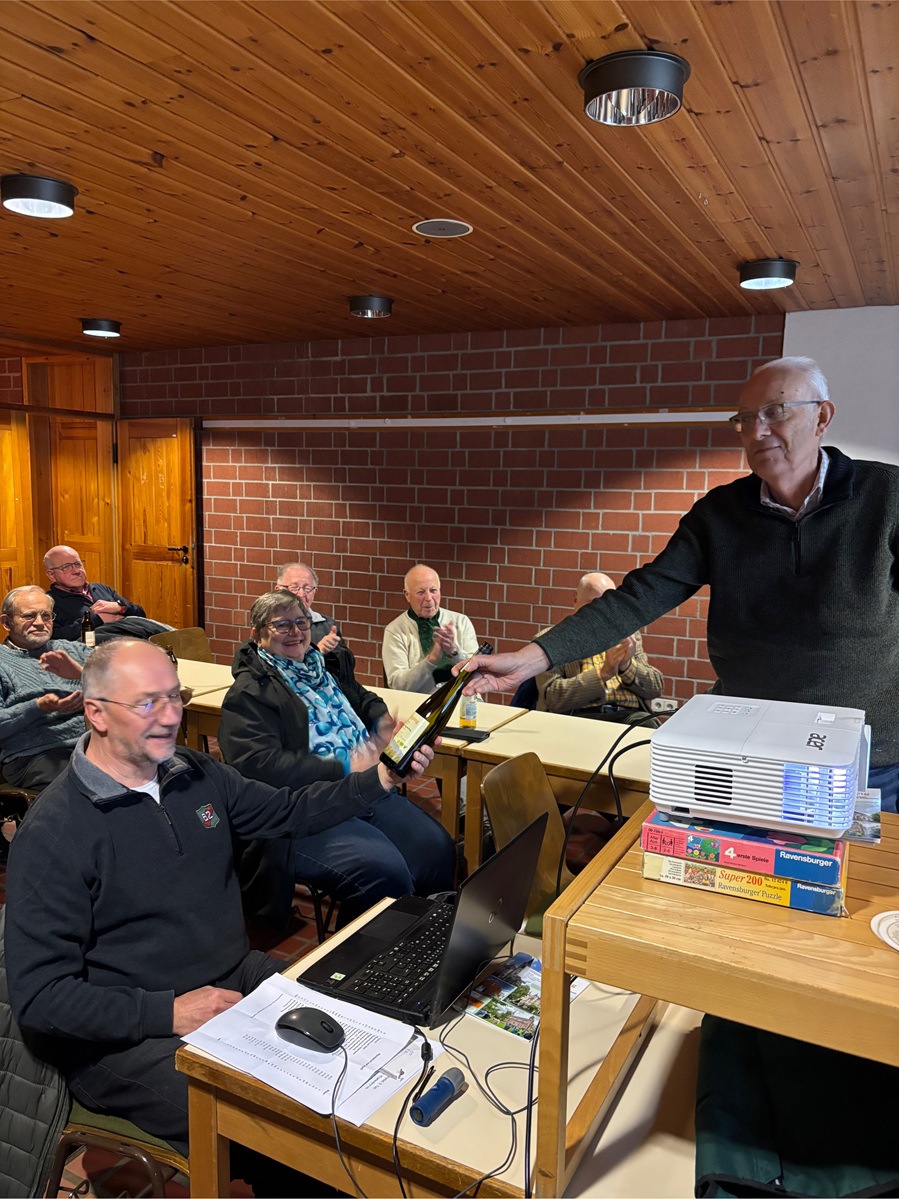 Am 19. Januar präsentierte Michael Jung im Jügesheimer Haus der Begegnung ein Rückblick auf die Aktionen und Veranstaltungen des Jahres 2025. Die Bilder wurden vom Referenten kommentiert. Im Anschluss bedankte sich der 1. Vorsitzende Herbert Massoth bei Michael für die gelungene Präsentation mit einem kleinen Präsent. Der Vortrag wurde von Alois Sahm vorbereitet. Die Bilder gesammelt hatte Norbert Löw.