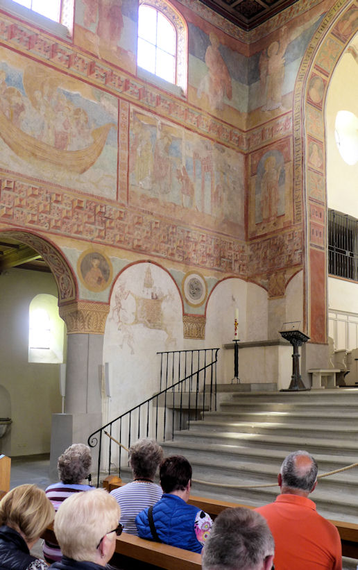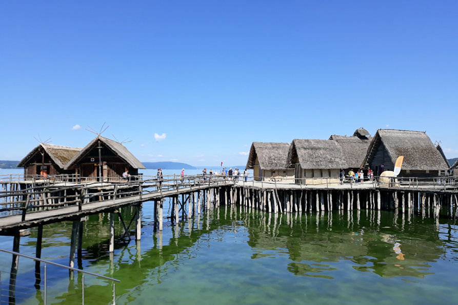Auf der Rückfahrt zum Hotel besuchten wir noch kurz die mit barocken Fresken und Skulpturen reich ausgestattete Wallfahrtskirche Birnau. Am vierten Tag der Reise ging es zunächst nach Salem. Für mehr als einen kurzen Blick auf Schloss und Münster und in den Schlossgarten reichte die Zeit allerdings nicht. Dann ging es weiter zu den Pfahlbauten nach Unteruhldingen, seit 2011 UNESCO-Weltkulturerbe.