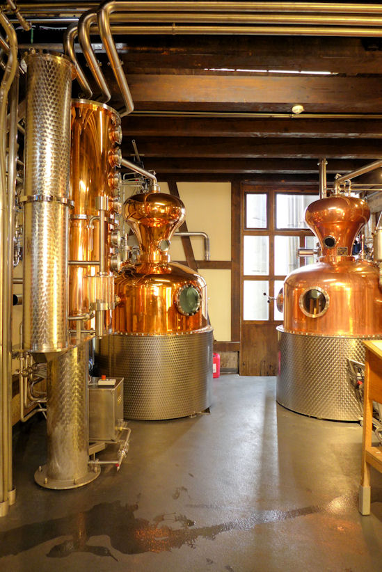 Danach ging es weiter mit dem Bus zum Tagesziel nach Weingarten. Dort befand sich unser freundliches, familiengeführtes Hotel, das uns für die kommenden 4 Nächte beherbergte. Am nächsten Tag ging es zunächst in die deutsch/österreichische Grenzregion nach Lindau-Hörbranz (Bregenzer Wald). Hier besuchten wir die Feinbrennerei Prinz. Unter fachkundiger Führung streiften wir durch Hallen, Gewölbe und Keller, die abwechselnd von Edelstahltanks, Kupferkesseln und Holzfässern dominiert wurden.