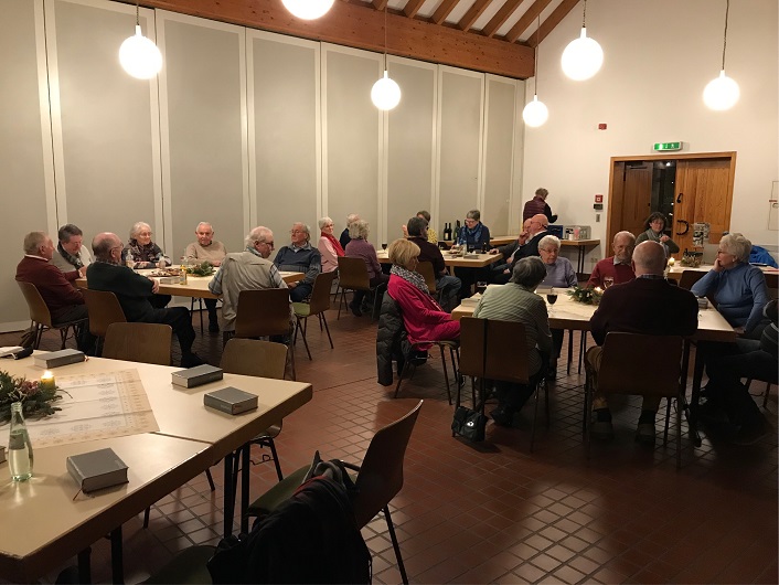 Den besinnlichen Teil der Adventsfeier der Kolpingsfamilie Jügesheim im Haus der Begegnung gestaltete Alois Sahm mit einer Geschichte über Stella und deren Erkenntnis, das sich selbst zu verschenken und anderen zu helfen dazu führt, bei sich selbst anzukommen. Einige stimmungsvolle Adventslieder, begleitet an der Gitarre durch Andreas Held, rundeten den besinnlichen Teil der Feier ab. Bei leckerem Weihnachtsgebäck und einer ansprechenden Auswahl an Getränken saßen die zahlreichen Gäste noch lange in gemütlicher Runde beisammen.