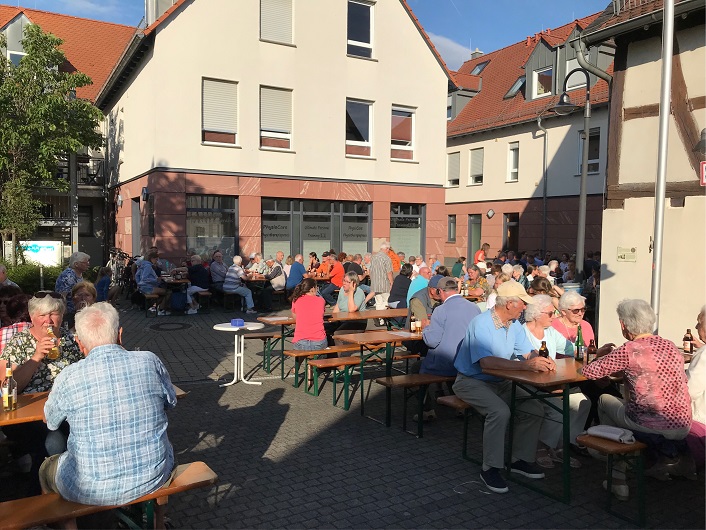 Am Montag, den 27. Juni fand das traditionelle Brunnenfest der Kolpingsfamilie Jügesheim vor dem Haus der Begegnung im Herzen von Jügesheim statt. Für Essen und Trinken war bestens gesorgt. Nach zwei Jahren pandemiebedingter Pause konnte diese gesellige Veranstaltung endlich wieder stattfinden. Bei herrlichem Sommerwetter fanden viele Besucher den Weg zum Haus der Begegnung, wo die Gäste kühle Getränke und das gewohnt gute Essen in angenehmer Atmosphäre genießen konnten. Der Vorstand dankt allen Gästen für den Besuch und den Helfer*innen für den gelungenen Ablauf.