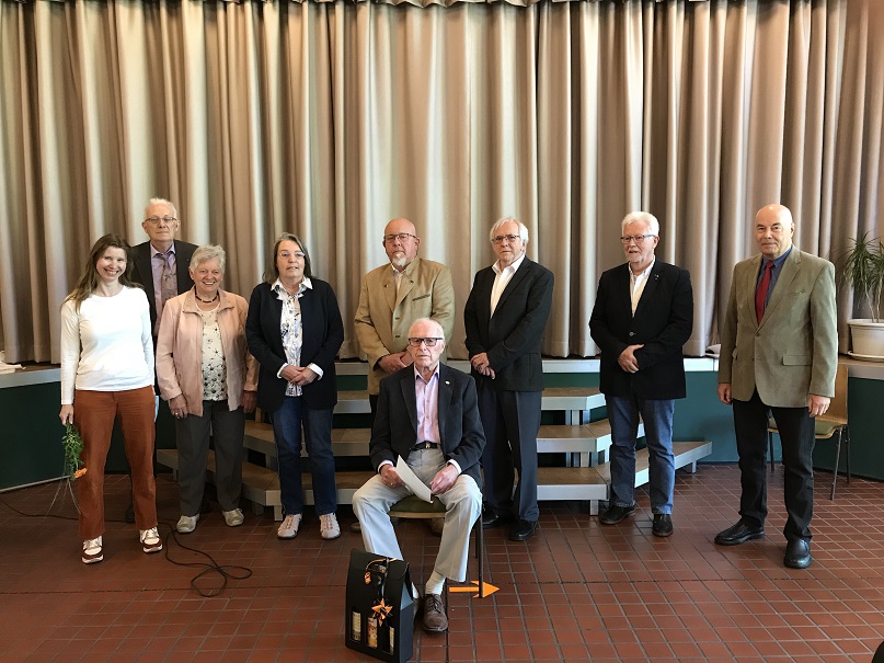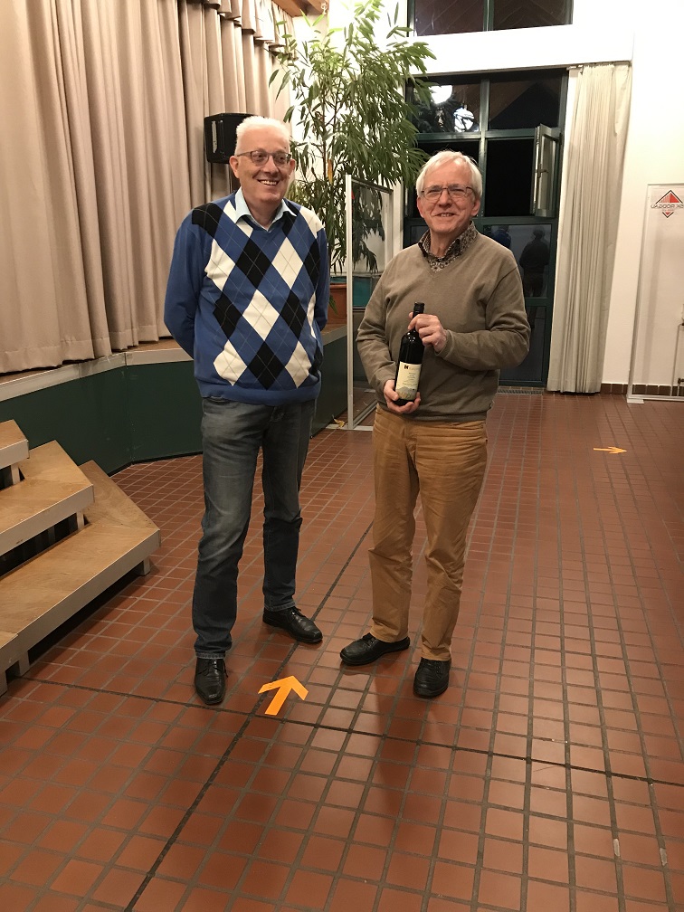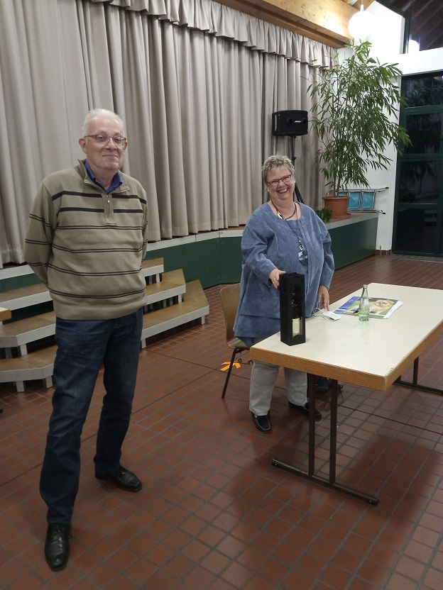 Geschenkübergabe an Alois Sahm Am 14. März präsentierte Alois Sahm im Jügesheimer Haus der Begegnung vor rund 20 Gästen einen Rückblick auf die Aktionen und Veranstaltungen der Jahre 2020 und 2021. Die Bilder wurden vom Referenten kommentiert, viele Gäste trugen humoristische Anekdoten und Kommentare zu den Aktionen bei. Michael Jung berichtete ausführlich von den Pilgerwanderungen und den Motorrad-Touren. Im Anschluss bedankte sich der 1. Vorsitzende Herbert Massoth bei Alois Sahm für die gelungene Präsentation und Norbert Löw für die Unterstützung bei der Vorbereitung mit einem kleinen Präsent.