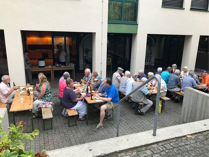 Gemütliches Beisammensein hinter dem Haus der Begegnung Mehr als 25 Mitglieder und Gäste der Kolpingsfamilie Jügesheim trafen sich am Samstag, den 27. August zum gemütlichen Beisammensein hinter dem Haus der Begegnung bei warmen Würstchen und kühlen Getränken.