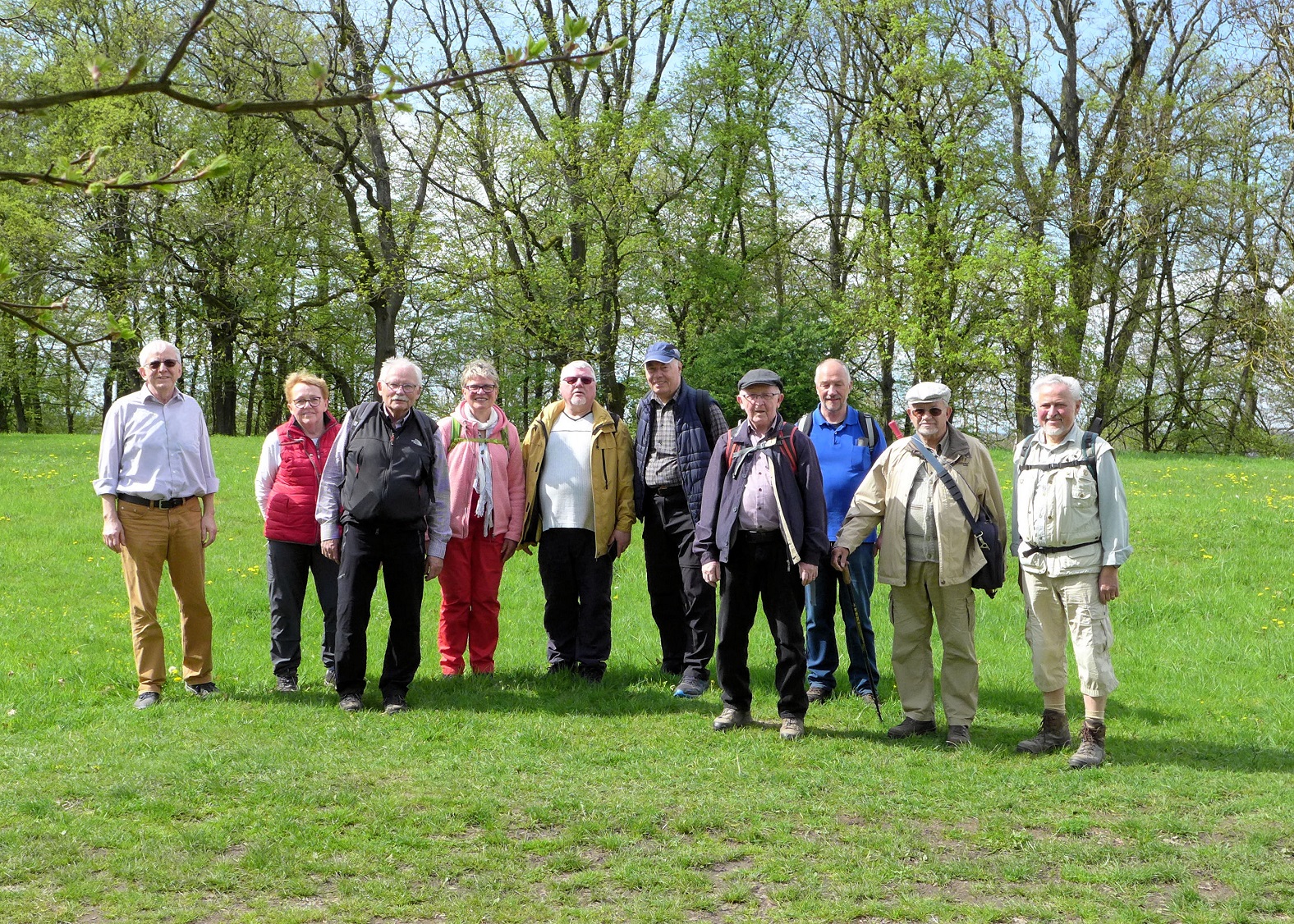 Auch im Frühjahr 2023 wanderten die Jügesheimer Kolpinger/innen in der Wetterau. Wanderführer Karl-Heinz Demuth hatte einen interessanten Rundweg um den Glauberg ausgesucht. Von Glauburg aus ging es über Effolterbach nach Stockheim, hoch zum Glauberg mit seinem Keltenmuseum und wieder zurück nach Glauburg. Die Wetterau zeigte sich von ihrer schönsten Seite. Die hügelige, überwiegend nicht bewaldete Strecke erlaubte einen weiten Rundumblick. Zahlreiche Storchenpaare, urige Heckrinder, Grau- bzw Nilgänse und grüne Wiesen konnte man parallel zur Frankfurter Skyline sehen. Auch der gerade blühende Raps und zahlreiche blühende Obstbäume und Büsche erfreuten das Auge der Wanderer. Die ca. 14 Kilometer waren zwar hüglig, aber durchaus dem Leistungsvermögen der Teilnehmer angepasst. In der Lindheimer Gaststätte zum ?Storchennest? fand ein erfüllter Wandertag einen angemessenen Abschluss.