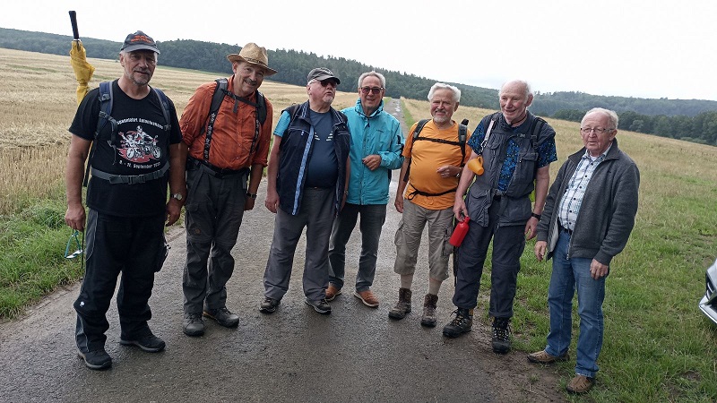 Die diesjährige Pilgerwanderung der Kolpingsfamilie Jügesheim führte von Frankfurt nach Marburg. Auf dem Elisabethpfad folgte sie den Spuren der heiligen Elisabeth von Thüringen. Karl-Heinz Demuth hatte die Wanderung vorbereitet und führte die sieben Teilnehmer von der Deutschordenskirche in Frankfurt über die Hohe Mark in den Taunus und über Usingen, Langgöns und Wetzlar in den hessischen Westerwald. Nach sieben regenreichen Tagen und 116 gelaufenen Kilometern mit viel Auf und Ab in stellenweise unwegsamem Gelände erreichte die Gruppe das Ziel, die Elisabethkirche in Marburg. Mit dabei war auch der inzwischen 79-jährige Gotthold Schwab, der bisher jede Pilgerwanderung der Gruppe seit 2005 mitgemacht hatte. Georg Loferer unterstützte die Gruppe mit Gepäcktransport, Getränken unterwegs und übernahm wo nötig auch den Personentransport. Spaß an der gemeinsamen Anstrengung, gleiche Wertvorstellungen und fröhlich gelebter Glaube verband die Teilnehmer bis zum abendlichen geselligen Beisammensein. Nicht auf dem Foto ist Fotograf und Mitwanderer Norbert Löw. Vollständiger Bericht Pilgerwanderung Autor: Micheal JungBild: Norbert Löw
