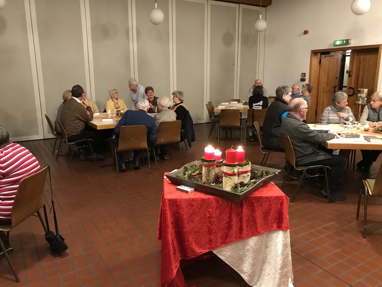 Den besinnlichen Teil der Adventsfeier der Kolpingsfamilie Jügesheim im Haus der Begegnung gestalteten Alois Sahm und Dieter Jäger. Einige stimmungsvolle Adventslieder, begleitet an der Gitarre durch Andreas Held, rundeten den besinnlichen Teil der Feier ab. Bei leckerem Weihnachtsgebäck, Lebkuchen und einer ansprechenden Auswahl an Getränken saßen die zahlreichen Gäste noch lange in gemütlicher Runde beisammen.