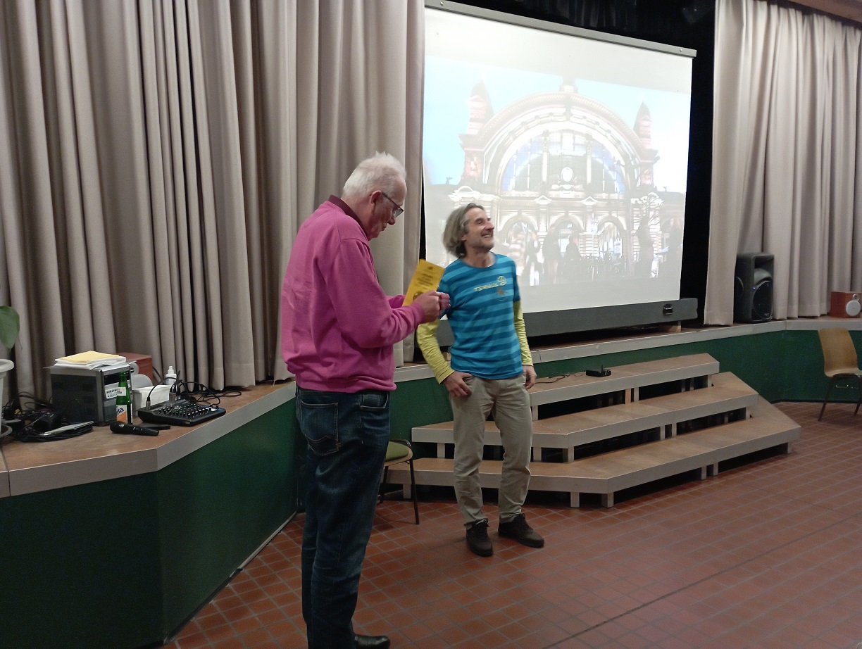 Am 23. Januar präsentierte Alois Sahm im Jügesheimer Haus der Begegnung vor rund 20 Gästen einen Rückblick auf die Aktionen und Veranstaltungen des Jahres 2022. Die Bilder wurden vom Referenten kommentiert, viele Gäste trugen humoristische Anekdoten und Kommentare zu den Aktionen bei. Michael Jung berichtete ausführlich von den Pilgerwanderungen und den Motorrad-Touren. Im Anschluss bedankte sich der 1. Vorsitzende Herbert Massoth bei Alois Sahm für die gelungene Präsentation mit einem kleinen Präsent.