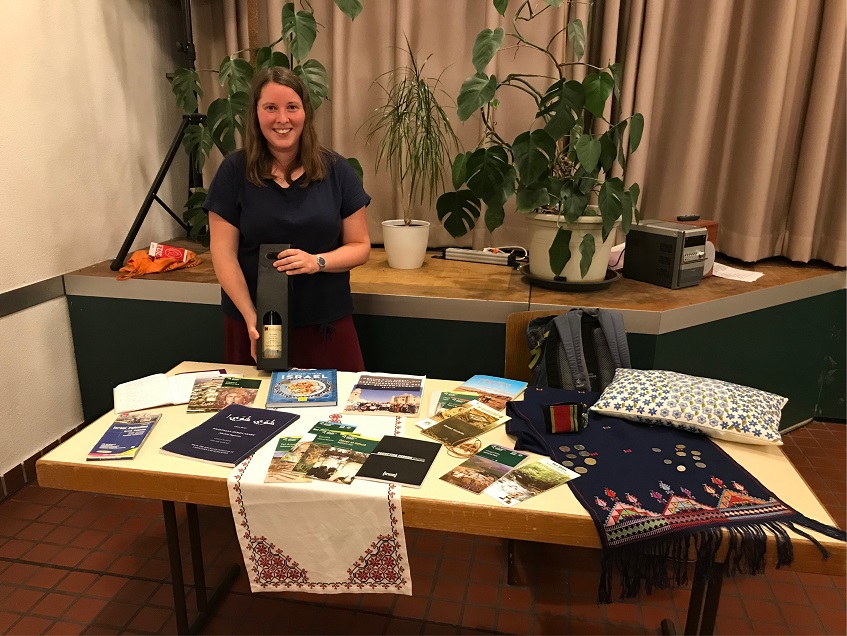 Viel zu schnell ging die Veranstaltung zu Ende. Der Vorsitzende Herbert Massoth dankte Frau Hickl für Ihren spannenden Vortrag und überreichte eine Flasche Wein. Auch im Anschluss stand die Referentin noch für Fragen zur Verfügung. Die Gäste hatten Gelegenheit in die ausgelegten Broschüren und Bücher zu schauen und von der Reise mitgebrachte Textilien zu bewundern.