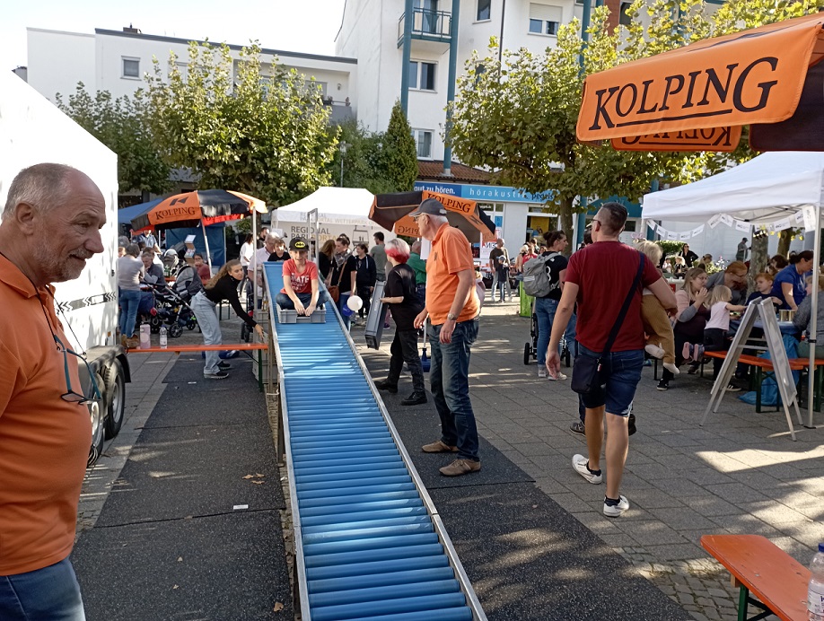 Kinderfest der Stadt Rodgau am 24.09.2023 am Puiseauxplatz Auch in diesem Jahr war die Kolpingsfamilie Jügesheim wieder am Kinderfest der Stadt Rodgau aktiv beteiligt. Die Kistenrutsche war einmal mehr Ziel der anwesenden Kinder. Von 13.00 bis 18.00 stauten sich Eltern und Kinder vor der Kistenrutsche. Der meistgesprochenen Satz war: Mama, nochmal???.. Die Kinder dankten den beteiligten Kolpinger/innen mit einem strahlenden Lachen.