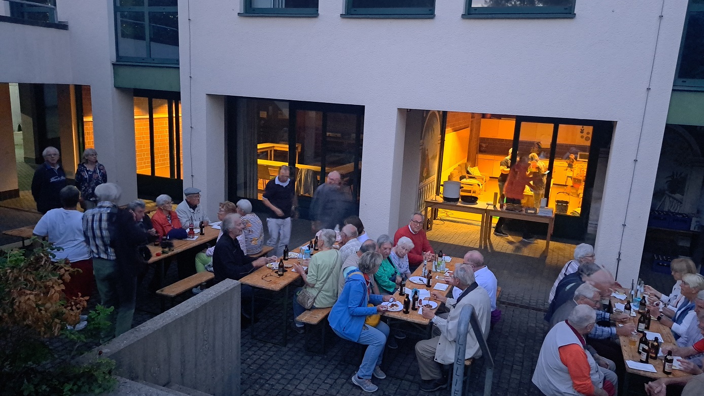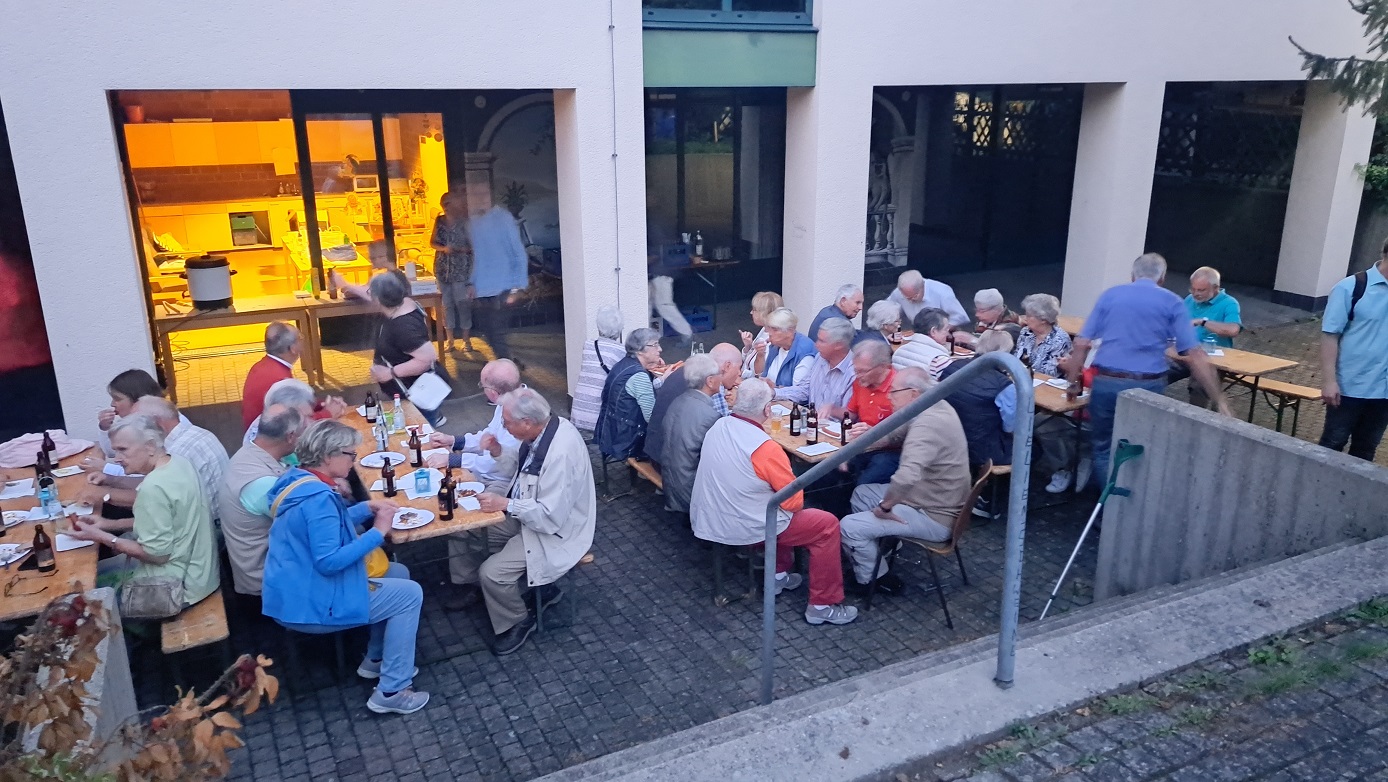 Am Montag, den 26. Juni fand das traditionelle Brunnenfest der Kolpingsfamilie Jügesheim vor dem Haus der Begegnung im Herzen von Jügesheim statt. Für Essen und Trinken war bestens gesorgt. Bei herrlichem Sommerwetter fanden viele Besucher den Weg zum Haus der Begegnung, wo die Gäste kühle Getränke und das gewohnt gute Essen in angenehmer Atmosphäre genießen konnten. Musikalisch wurden die Gäste von 2 Klang unterhalten Der Vorstand dankt allen Gästen für den Besuch und den Helfer*innen für den gelungenen Ablauf.