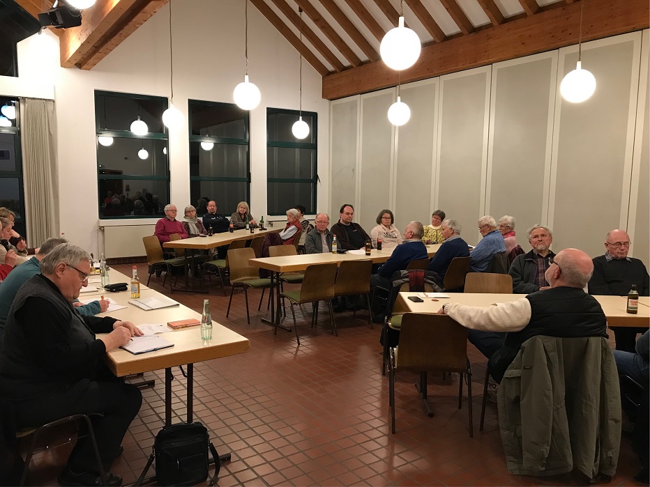 Herbert gab Erläuterungen zur neuen Beitragsordnung des Kolpingwerks. Er lud ein zu den Jubiläumsveranstaltungen im Mai. Michael Hörter berichtete über das weitere Vorgehen bei der Bildung des Pastoralraumes Rodgau-Rödermark. Wer bei einer der Arbeitsgruppen mitmachen möchte, melde sich bitte im Pfarrbüro. Norbert Goßmann wurde mit großem Applaus als langjähriger Reiseorganisator verabschiedet. Diese Aufgabe übernimmt nun Karl-Heinz Demuth. Herbert Massoth dankte Jens Werner und Norbert Löw für die Pressearbeit, Gerald David für die Pflege der Website, Alois für Vorbereitung und Durchführungen diverser Veranstaltungen (Rückblick, Adventsfeier?) und Annette Massoth für die Gestaltung des Schaukastens an der Kirche. Die Getränke waren traditionell frei, die Veranstaltung endete um 21:04 Uhr.