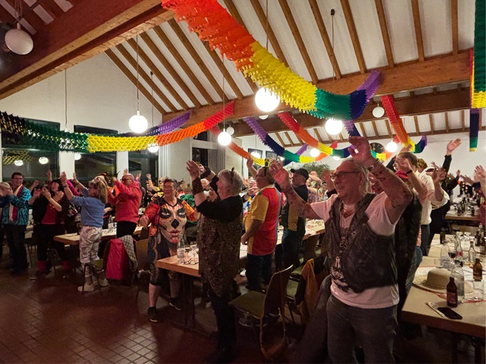 Am Rosenmontag fand im Haus der Begegnung das Närrische Heringsessen des KKC statt. Schon vor dem leckeren Heringssalat und Hausmacher Wurst begann das bunte Programm für die zahlreichen Gäste mit einem Solotanz der jungen Gardetänzerin Malìa von den Sportfreunden Rodgau 1911. Pia Held führte schwungvoll in ihrem Wanderoutfit durch den Abend. Sie hatte passend zum Anlass Heringe dabei, allerdings welche zum Zeltaufbau. Natürlich vegan! Es folgten die Giesemer Trottwa-Lersche mit einem bunten Medley ihrer besten Stimmungslieder und brachten den Saal regelrecht zum Kochen. Beim Ramba-Zamba hielt es niemanden mehr auf den Sitzen. Rosi Bergmann vom Krebbelcafé Nieder-Roden stellte in ihrer Büttenrede die Überlegung an, als Rentnerin ein Gartencafé zu eröffnen. Als ihr aufging, dass ihr dann kein freier Tag mehr bliebe, lies sie es besser sein. „DIE und DER“ – Andreas Kraus, Andreas Held und Thielo Neiß – sorgten für einen hohen Wiedererkennungswert mit ihren originell umgetexteten Klassikern aus der Pop- Schlager- und Rockgeschichte. Der Büttenvortrag von Andreas Kraus als „Maschine Mann“ mit Männergrippe sorgte für viele Lacher. Anschließend begeisterte der Elferchor der SKG mit stimmungsvollen Liedern. Alle Teilnehmer erhielten den Hausorden und wurden mit viel Applaus verabschiedet. Der Vorsitzende Herbert Massoth dankte allen Gästen des KKC und den Programmgestaltern vor, auf und hinter der Bühne. Ein besonderer Dank galt der Küchen- und Thekenmannschaft sowie den Kellnerinnen und Kellnern für die großartige Bewirtung und Verköstigung.
