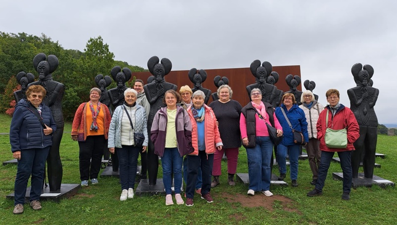 Ab Freitag, den 26.9. begann die traditionelle Hüttenfahrt der Jügesheimer Kolpingfrauen zum 41. Mal. In diesem Jahr machten sich 12 Teilnehmerinnen auf den Weg zum Jugend- und Freizeitzentrum Ronneburg mit Sicht auf die Burg. Wegen der erfreulich kurzen Anreise gab es bereits am Nachmittag die Gelegenheit zur Einkehr in ein Eiscafe in Langenselbold mit den ersten angeregten Gesprächen und Austausch. Nach Bezug der Zimmer und dem Abendessen begann der traditionelle gemütliche Abend mit vielen Gesprächen und gemeinsamen Spielen. Ein Höhepunkt waren die Ehrungen für langjährige Teilnehmerinnen. Eine davon konnte bereits auf 30 Fahrten zurückblicken. Am Samstag besuchte man das Hofgut Kapellenhof in Hammersbach. Dort gab es viel Informatives über die ökologische Schafhaltung, Einkaufmöglichkeit im schönen Hofladen und ein Mittagessen mit hauseigenen Produkten. Gestärkt ging es weiter zur „Himmelsschaukel“ und zur Keltenwelt am Glauberg. Es fand eine individuelle, spannende Führung statt. Die Kolpingfrauen erfuhren viel über die bedeutenden archäologischen Funde und den weltberühmten „Keltenfürst vom Glauberg“. Der Ausflug endete mit der Einkehr im Museumscafe mit Kaffee und Kuchen. Am Sonntag folgte der Besuch des Erntedank Gottesdienstes in Langenselbold und ein Spaziergang rund um das ehemalige Kloster. Nach dem gemeinsamen Mittagessen ging es dann am frühen Nachmittag wieder in Richtung Rodgau. Nicht, ohne sich schon für die nächste Fahrt im Herbst 2026 zu verabreden.