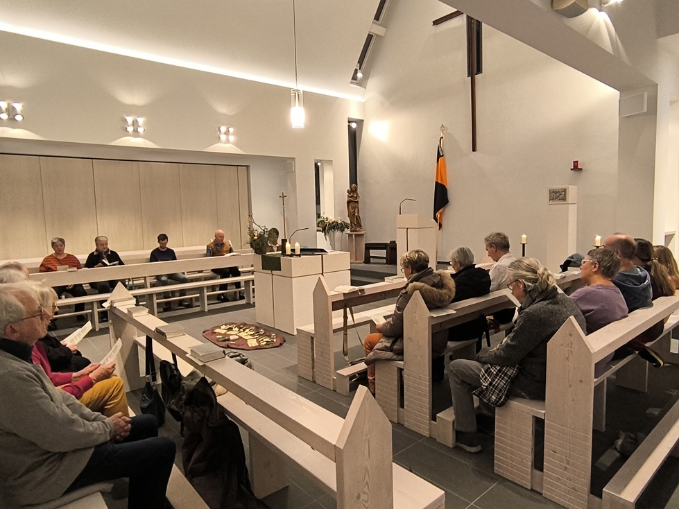 KolpinggedenktagDie Kolpingsfamilien des Pastoralen Raums Rodgau Rödermark feierten am Todestag von Adolph Kolping um 19.00 Uhr einen gemeinsamen Wortgottesdienst mit Kommunionfeier in der Kirche Heilig Kreuz in Rollwald.Es waren von allen Kolpingsfamilien Kolpinggeschwister gekommen, um mit Kolpingschwester Astrid Hitzel von dem KF-Ober-Roden diesen Gedenktag mit einem Wortgottesdienst zu feiern. In ihrer kurzen Ansprache ging sie auf das Wirken und das Werk unseres Gründers Adolph Kolping ein Im Anschluss wurden in froher Runde die Plätzchen und der Glühwein geteilt der mitgebracht wurde. Bei dem gemütlichen Beisammensein entstanden interessante Gespräche und ein reger Austausch zwischen den Kolpinggeschwister der 3 Kolpingsfamilien