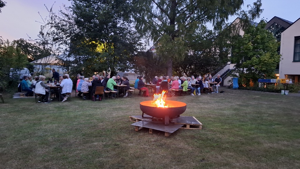 Am Montagabend fuhren die Jügesheimer Kolpinger/innen auf einem Teil des südlichen Rodgaurundwegs. Nach dem Start am HdB fuhr die Gruppe über die Ringstraße an der Baumschule Schüler vorbei zum Wald. Die Kreisquerverbindung wurde nach kurzer Zeit gequert und es ging weiter über den Katharinenhof nach Rollwald. Am ehemaligen Parkhotel, dem S-Bahnhof vorbei ging es über den Waldweg zu den Geflügelzüchtern, dem Industriegebiet von Niederroden, dem Krümmlingsweg und von dort der Bahn entlang nach Dudenhofen. Im Restaurant „Zum Stern“ liesen die Kolpinger/innen dann bei leckeren Speisen, kühlen Getränken und angeregten Gesprächen den sonnigen Montag ausklingen. Autor + Bild: Norbert Löw